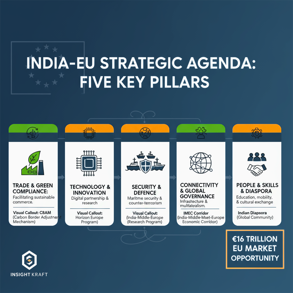 The New Strategic Agenda is beyond partnership offer; it’s a negotiation over the architecture of the future global economy. The EU, confident in its regulatory power, is pushing for accelerated convergence. India, confident in its demographic and innovative power, must balance the benefits of alignment with the imperative to protect its regulatory sovereignty and developmental space.